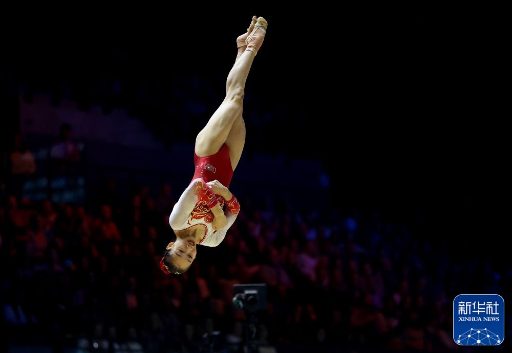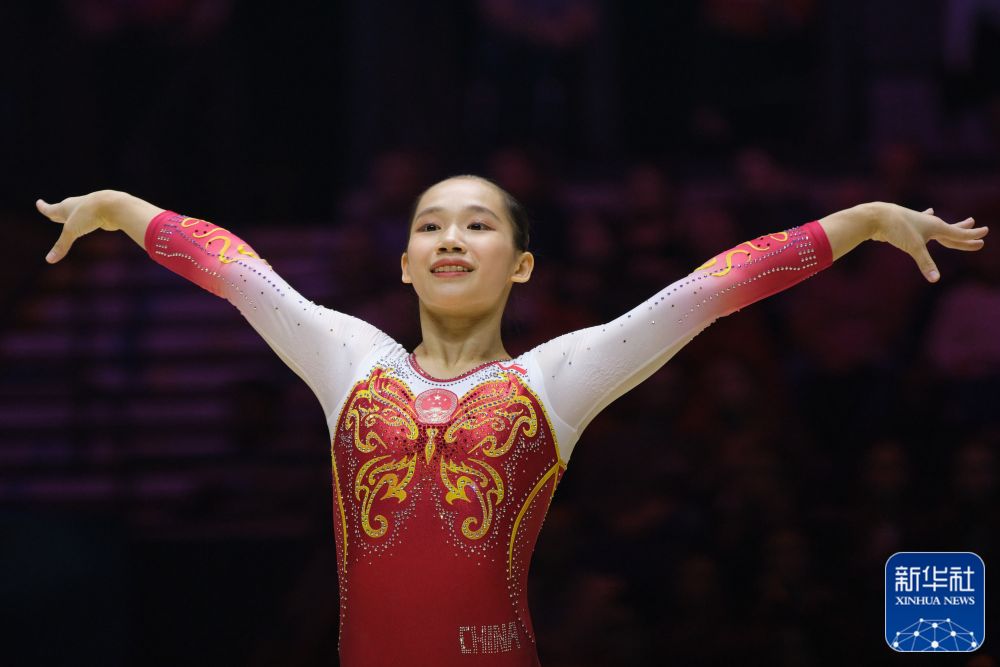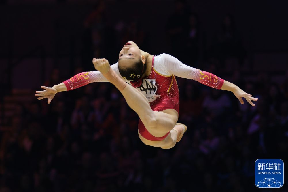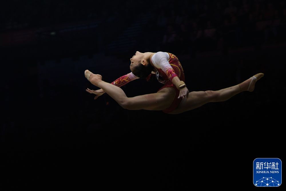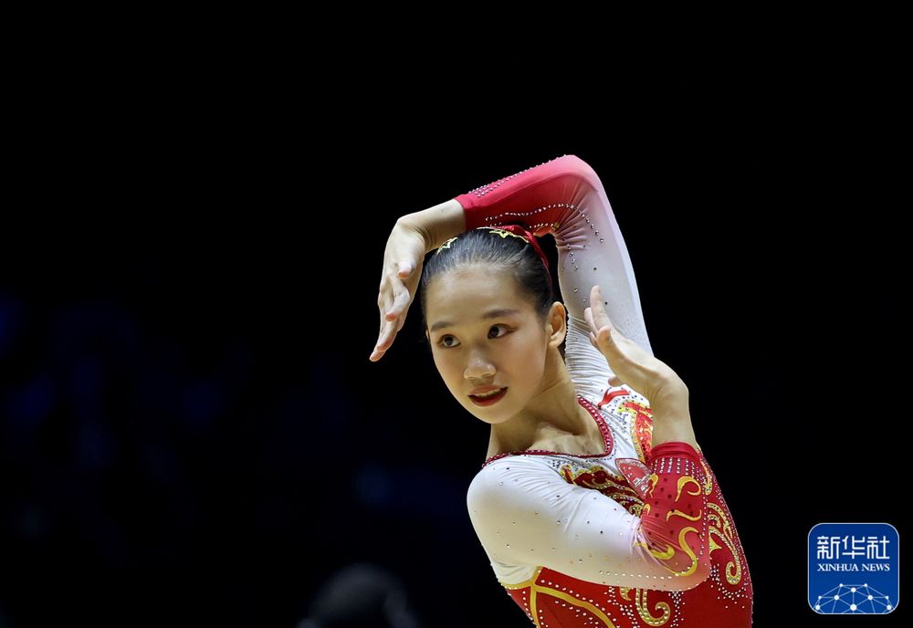↑中国队选手欧钰珊在自由操比赛中。新华社记者 李颖 摄