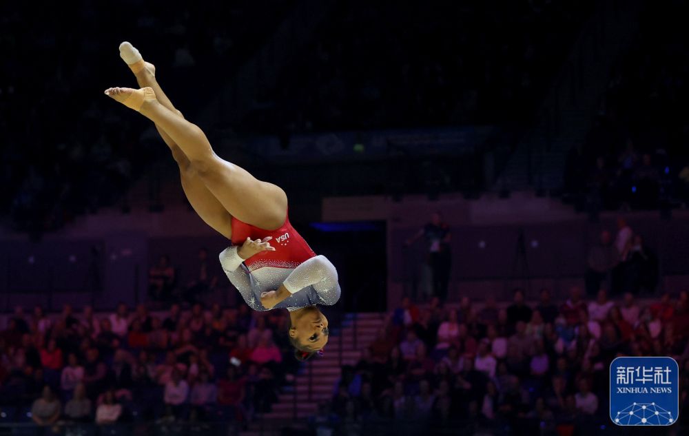 ↑美国队选手奇利斯在自由操比赛中。新华社记者 李颖 摄