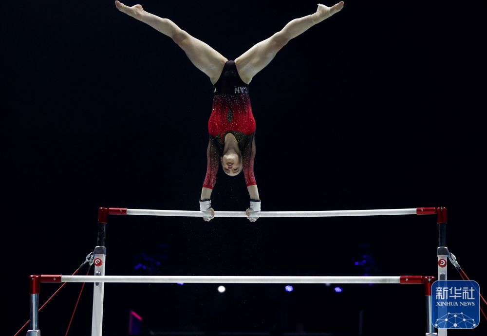 ↑加拿大队选手特纳在高低杠比赛中。新华社记者 李颖 摄