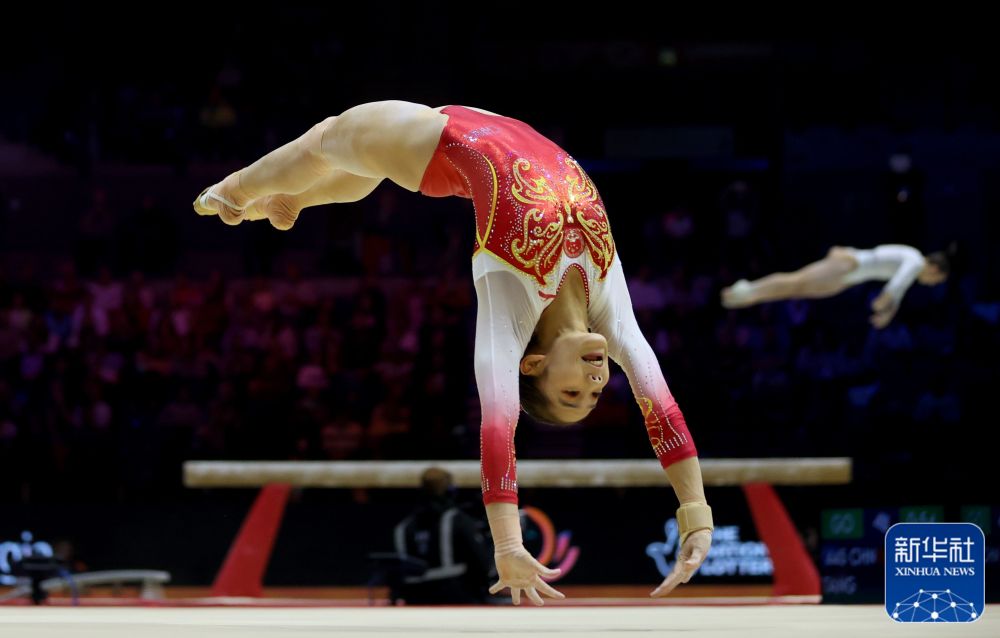 ↑英国队选手芬顿在平衡木比赛中。新华社记者 李颖 摄