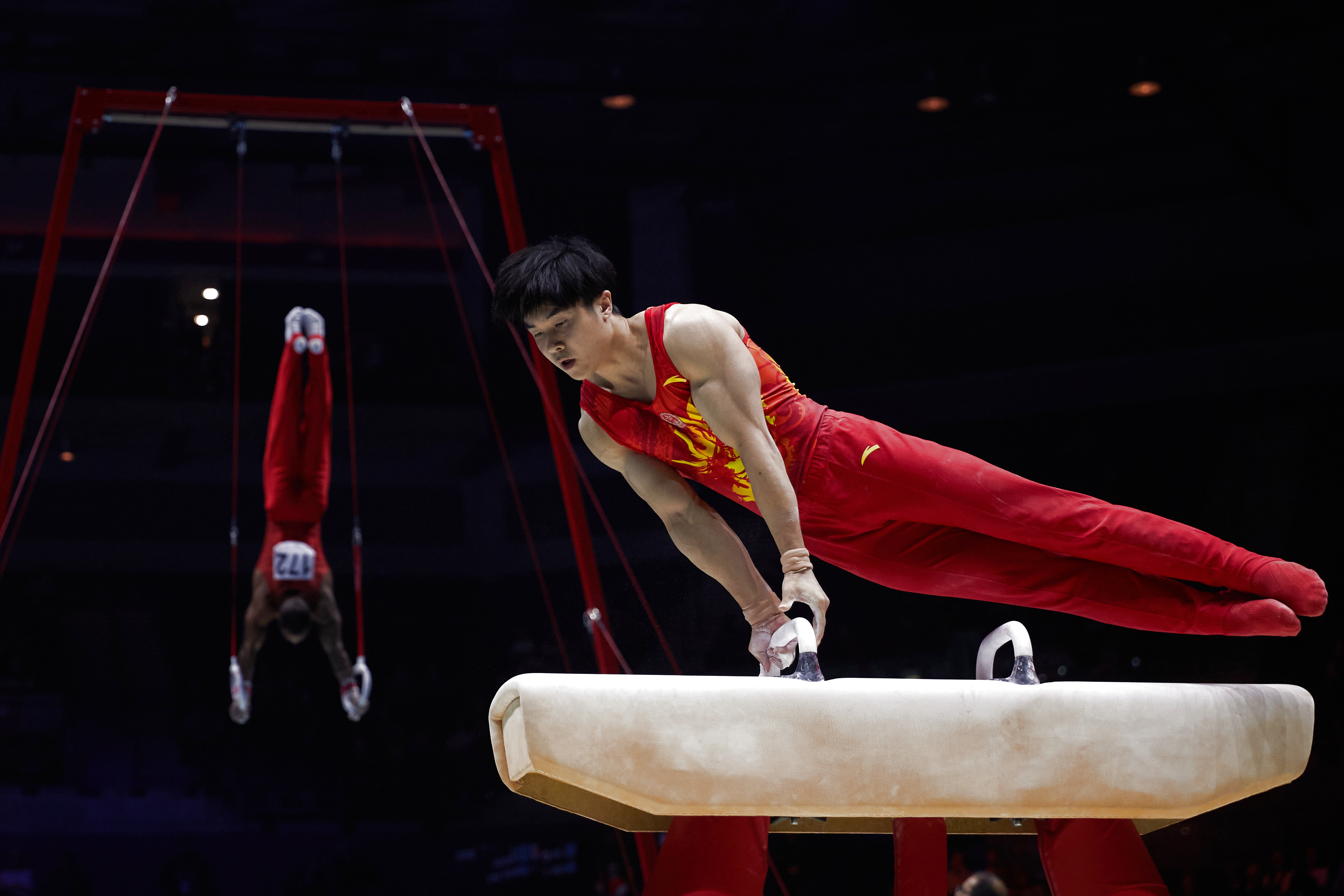 体操世锦赛男团决赛,两名来自湖南的运动员张博恒、杨家兴与国家队队友孙炜、邹敬园、尤浩一同向金牌发起冲击。比赛采用“533”赛制,即每队5人参赛,每个单项3人出场,且3人的成绩全部计入团体分数。这意味着,任何一次细小的闪失,都有可能左右最终胜负。中国队一扫资格赛失误频频的阴霾,6个单项得分全部超过40分,且在鞍马、吊环、跳马、双杠、单杠等五个单项中排名第一,最终获得257.858分,以绝对优势夺冠。在夺得世锦赛冠军的同时,中国男队也获得直通巴黎奥运会的资格。
