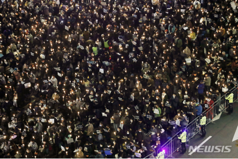 韩媒:首尔市中心爆发大规模追悼烛光集会,参加者近6万人