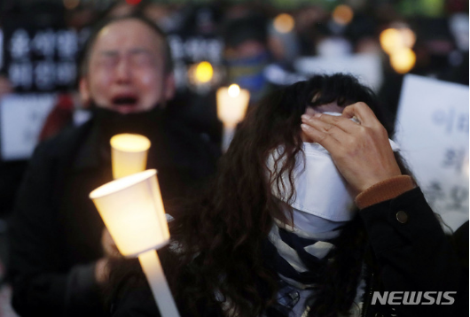 5日晚,首尔市中心爆发大规模追悼烛光集会。