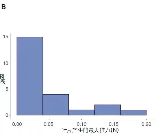 地胆草叶片产生的推力大小范围。图片来源:参考文献,汉化:祝欢尽管这些努力看起来似乎微不足道,但它们并不是蚍蜉撼树。它们面对的不是身躯庞大的巨人,而是刚刚冒出头的草类幼苗,它们要做的事情是把幼苗扼杀在摇篮里,防止它们长起来后再遮蔽自己。