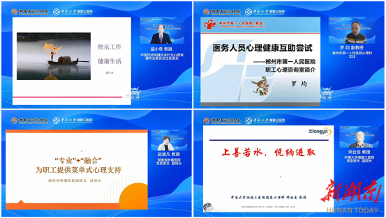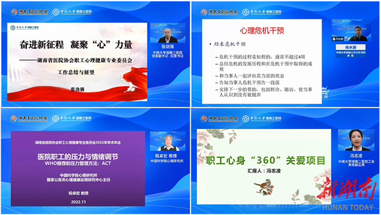 大众卫生报·新湖南客户端11月8日讯(通讯员 熊晓云)11月5日,湖南省医院协会职工心理健康专业委员会2022年学术年会在线上顺利召开。会议由湖南省医院协会职工心理健康专业委员会主办,中南大学湘雅三医院承办。湖南省医院协会会长陈卫红,中南大学党委常委、副校长陈立章,中南大学湘雅三医院党委书记何庆南,湖南省医院协会职工心理健康专业委员会主任委员、中南大学湘雅三医院党委副书记、纪委书记张劲强等出席云端会议并致辞,长沙市中心医院党委委员、副院长邓平主持开幕式,1万余人通过网络收看现场直播。