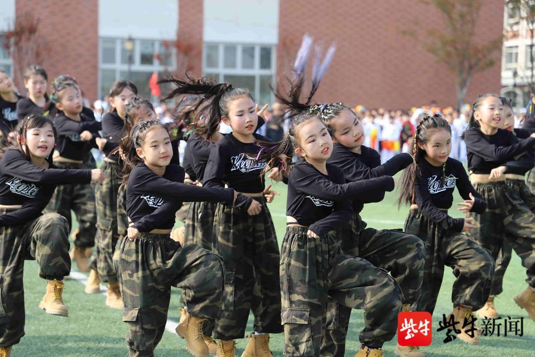 初中部有素质操,小学部“蓝鲸娃”带来的一曲爵士舞吸引了全场的目光。只见操场中央的同学们个个人小鬼大,跟随着律动感很强的音乐不时变换队形,舞蹈动作设计周到、衔接紧密,展现了滨外孩子们蓬勃向上的精神面貌。