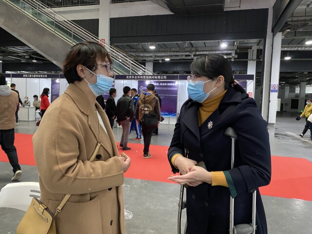 招聘现场,不少心智障碍者达成初步就业意向。24岁的曾雨婷应聘黄花机场保洁员的职位,她无比期待地说:“向往着能到公司上班,接触到更多的人。”得知被录取后,她与母亲都无比开心。
