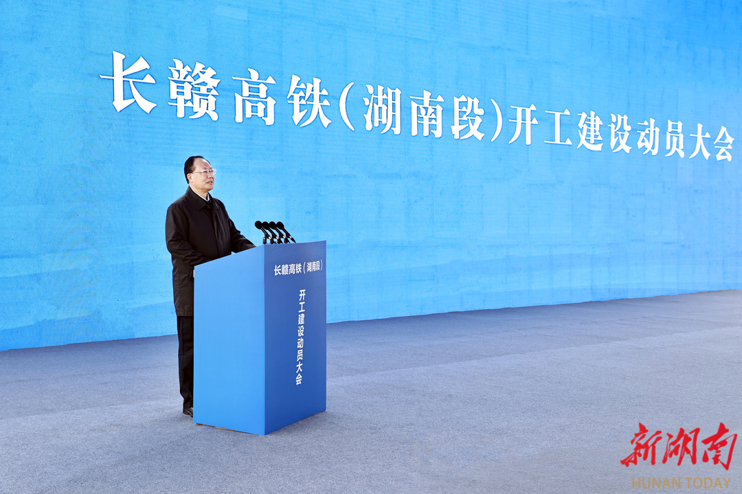 (11月21日上午,长赣高铁湖南段开工建设动员大会在长沙县召开,张庆伟宣布项目启动。湖南日报全媒体记者 唐俊 摄)