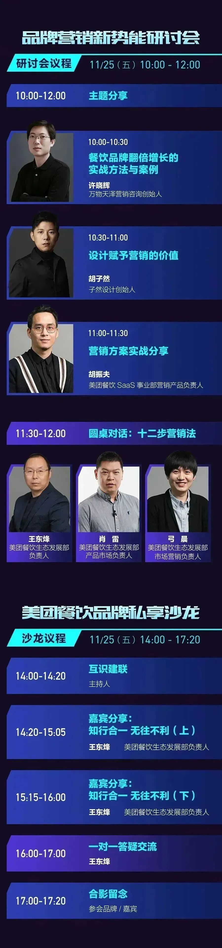 万物天泽营销创始人许晓辉《餐饮品牌翻倍增长的实战方法与案例》、美团餐饮SaaS事业部营销产品负责人胡振夫《营销方案实战分享》一起剖析数字化营销实战案例。