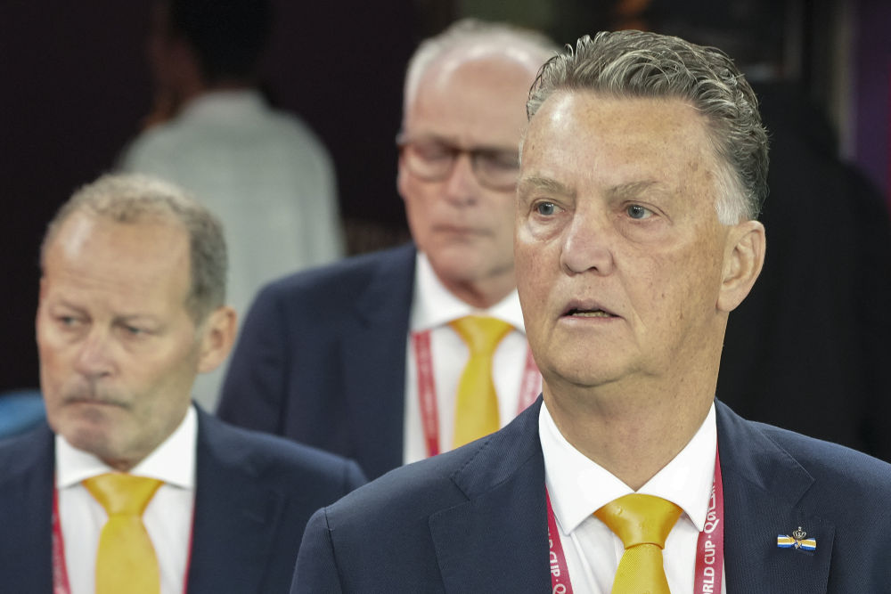 荷兰队主教练路易斯·范加尔(右)在比赛开始前。新华社记者丁旭摄