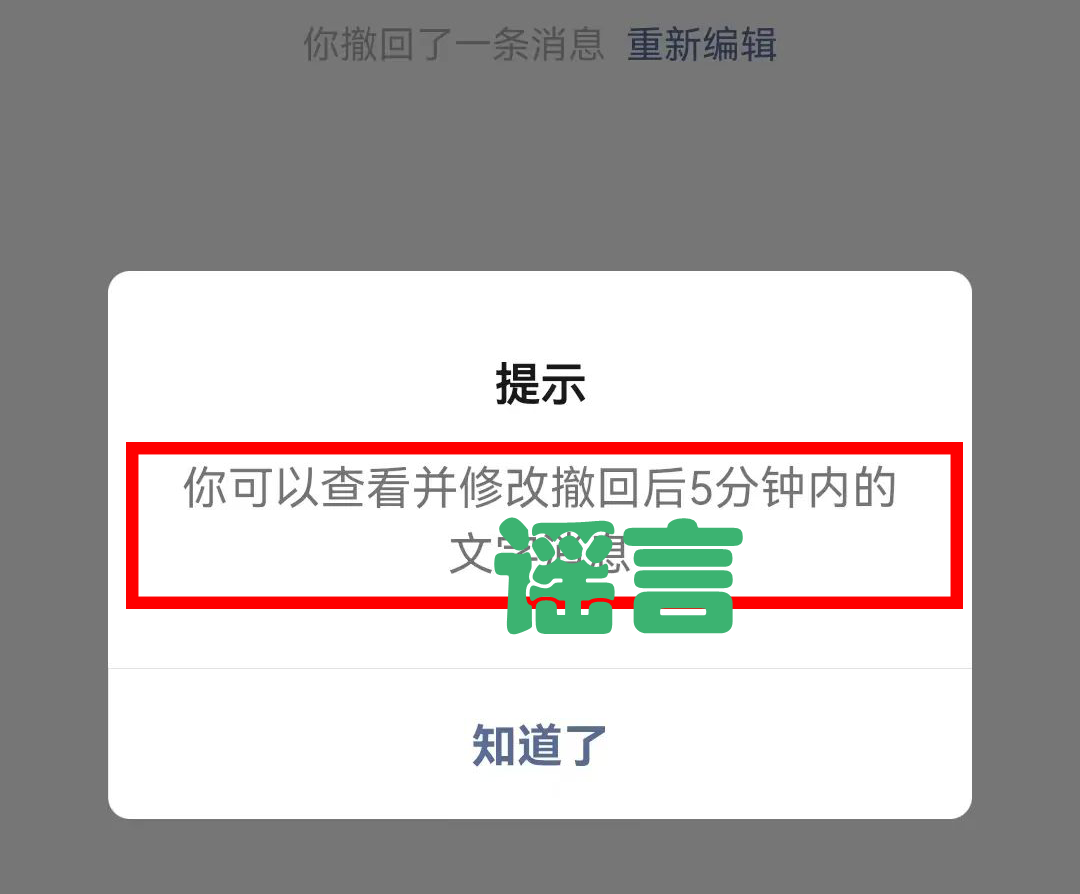 微信支持撤回5分钟内消息为不实信息!