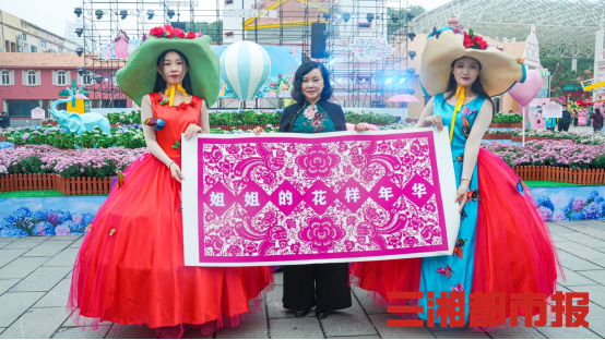 同时,长沙剪纸非遗代表女性人物张询也展示了花花世界里“非遗版的姐姐”的剪纸艺术,向广大市民传递女性的独特魅力,引得游客掌声不断。