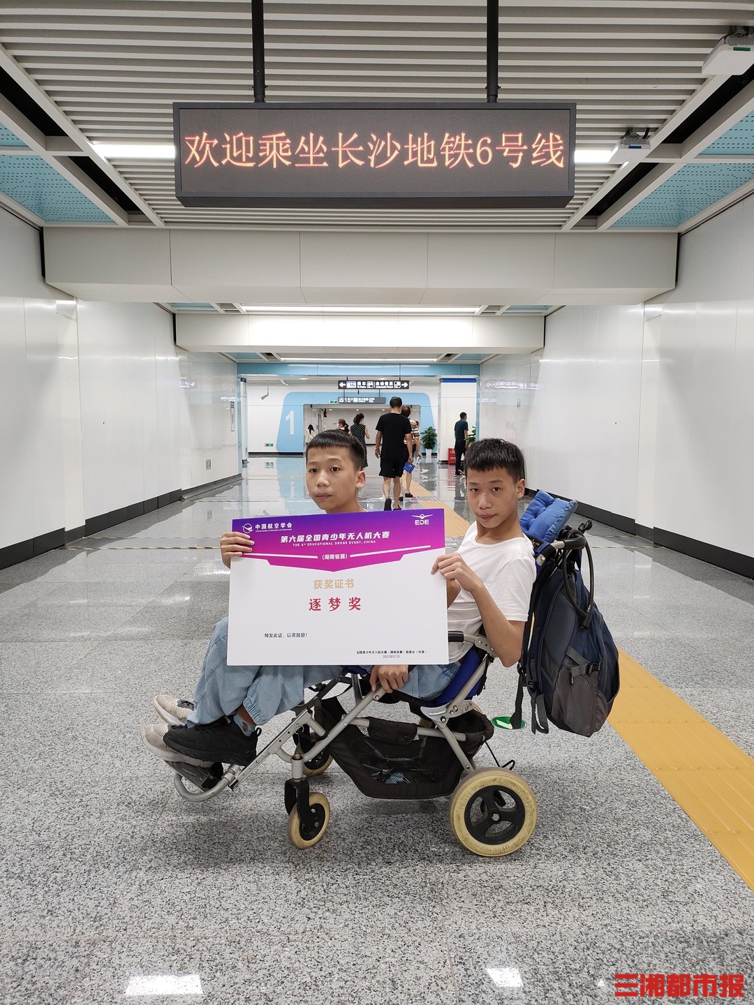 (11月8日,脑瘫双胞胎兄弟收到了第六届全国青少年无人机大赛(湖南省赛)《逐梦奖》。 )