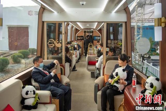 列车创新采用了“轮轨+齿轨”双制式的牵引模式,在轮轨段最高运行速度可达120公里/小时,在齿轨段最高运行速度可达40公里/小时。此外,列车采用了4节编组,额定载客数145人,具有国内最大面积曲面观光玻璃窗,可实现车内游客与自然景观的深度交流。同时,列车还运用了北斗/5G物联网自动驾驶、自动保护、运营大数据存储智能分析等高科技技术。