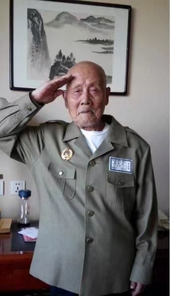 (101岁老兵朱洪斌。)
