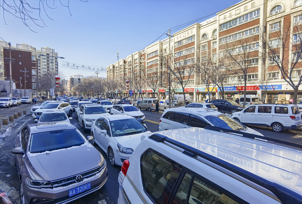11月28日,汽车行驶在乌鲁木齐市万和街上(手机照片)。新华社记者胡虎虎 摄