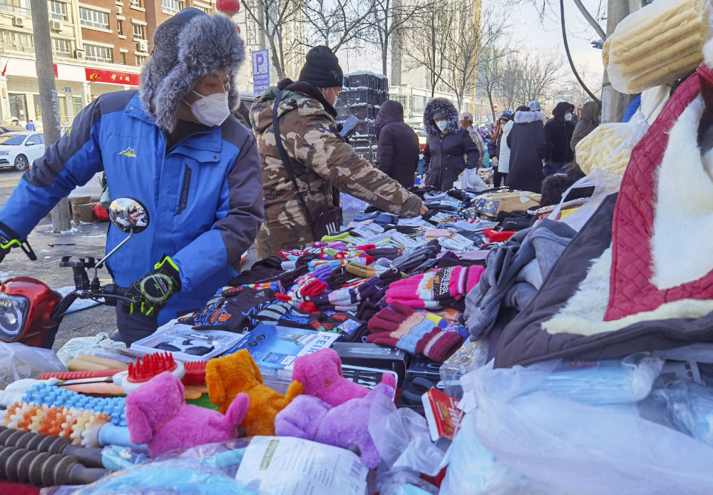 11月28日,路人在万和街的摊位前选购袜子手套等商品(手机照片)。新华社记者胡虎虎 摄