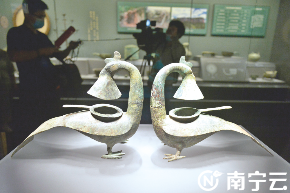 “广西古代文明陈列”讲述从旧石器时代到元明清时期波澜壮阔的广西古代历史发展进程和成就,展览遴选馆藏历史文物,包含广西古人类、手斧、贝丘、大石铲、岩画、铜鼓、灵渠、岩洞葬、石刻、建筑等具有地域民族特色的元素。其中的镇馆之宝——西汉的翔鹭纹铜鼓,是石寨山型铜鼓中的代表作,属于国宝级藏品,是难得一见的珍贵文物;西汉羽纹铜凤灯采用的錾刻工艺,显示了2000多年前中国铸铜工艺的高超水平和铸铜工匠的精湛技艺,是广西出土西汉铜器中的精品。“烽火南疆——广西近现代革命史陈列”通过馆藏革命文物再现历史事件,全景式展现1840—1949年广西近现代革命的壮丽史诗。