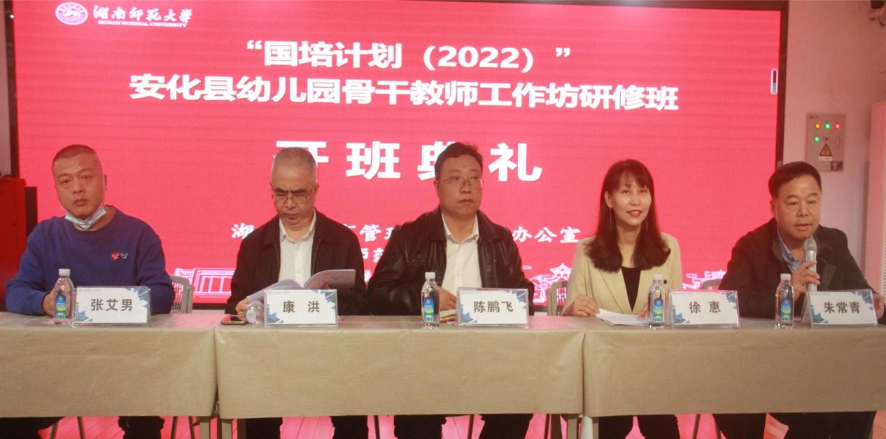新湖南客户端11月28日讯(通讯员 陈佳宾 黄丽君)11月21日,“国培计划(2022)”安化县幼儿园骨干教师工作坊研修班(B102-8)来到湖南师范大学幼儿园开展浸润式培训学习,此次国培计划项目由湖南省教育管理干部培训中心主办,湖南师范大学幼儿园承办,在做好疫情防控的前提下顺利开展。开班典礼由湖南省教育管理干部培训中心办公室朱常青副主任主持,湖南省教育管理干部培训办公室常务副主任、湖南师范大学中小学校长和教师培训部主任康洪致辞,项目首席专家、湖南师范大学幼儿园园长徐惠解读跟岗研修方案,安化县教师发展中心副主任陈鹏飞发表讲话,安化县冷市镇完全小学周亮秋作为学员代表发言。