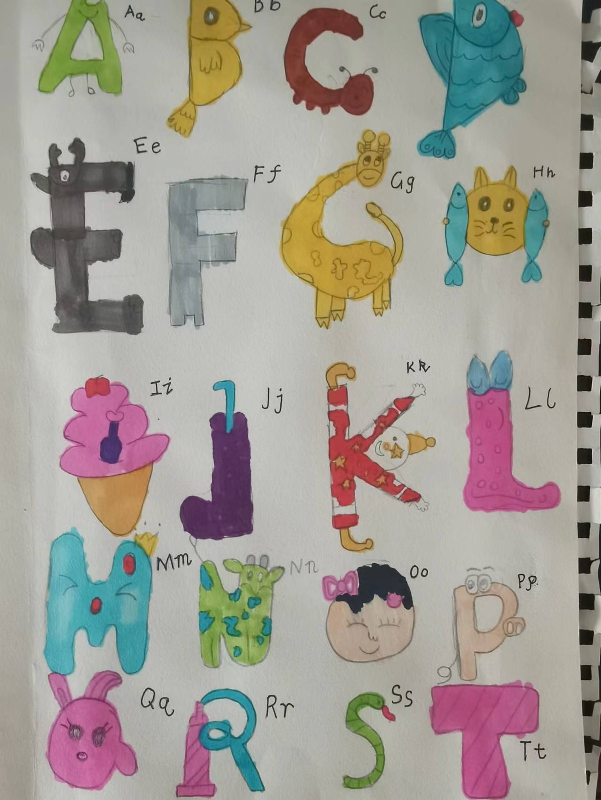 创意画增加了字母学习的趣味性,也利于孩子们想象力的发展。孩子们的字母创意画真是让人大饱眼福。