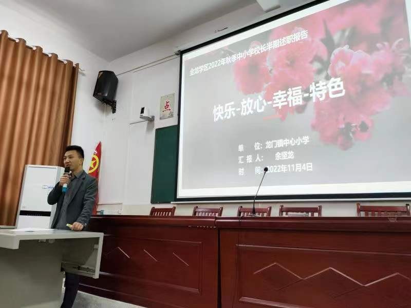 首先是校长述职。4所初中,2所中心小学为必述单位,另外现场抽签确定4所完小和1所村小,11位校长先后进行现场述职。一份文稿,一份PPT,体现出校长们对此次述职的重视,所述内容都凝聚了其在治校、办学中的智慧和心血中。“让学生过得快乐,让家长感到放心,让老师获得幸福,让校园带有特色。”这是龙门镇中心小学余坚龙校长在述职中提出办学理念,从他精心制作的PPT中,可以看出他是这么想的,也是这么做的。此外以《不负韶华,守正创新,让学校与自己一同成长》《履职尽责守初心,砥砺前行增实效》《答好“千岩万壑不辞劳”的“责任卷”》等述职报告,无不充分展示了各校在过去半期中所做的工作,彰显了校长们在各自岗位“善谋事,肯干事,能成事”的工作态度和作风,在全体与会者中产生了强烈共鸣。