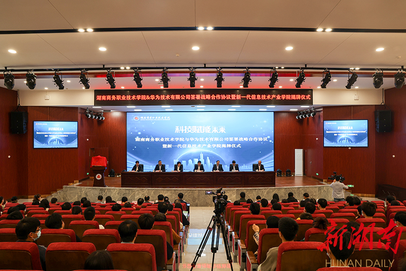 科教新报·新湖南客户端讯(通讯员 杨路平 谢梦玲 邱蕾)11月8日,湖南商务职业技术学院与华为技术有限公司签署合作协议,双方合作共建新一代信息技术产业学院,这将是华为在湖南建设的第一个新一代信息技术产业学院。