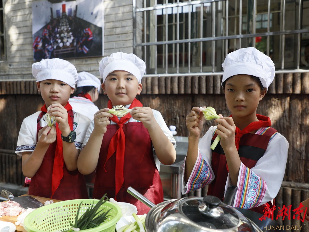 ▲沱江镇第一小学烹饪社团的学生正在制作瑶家十八酿