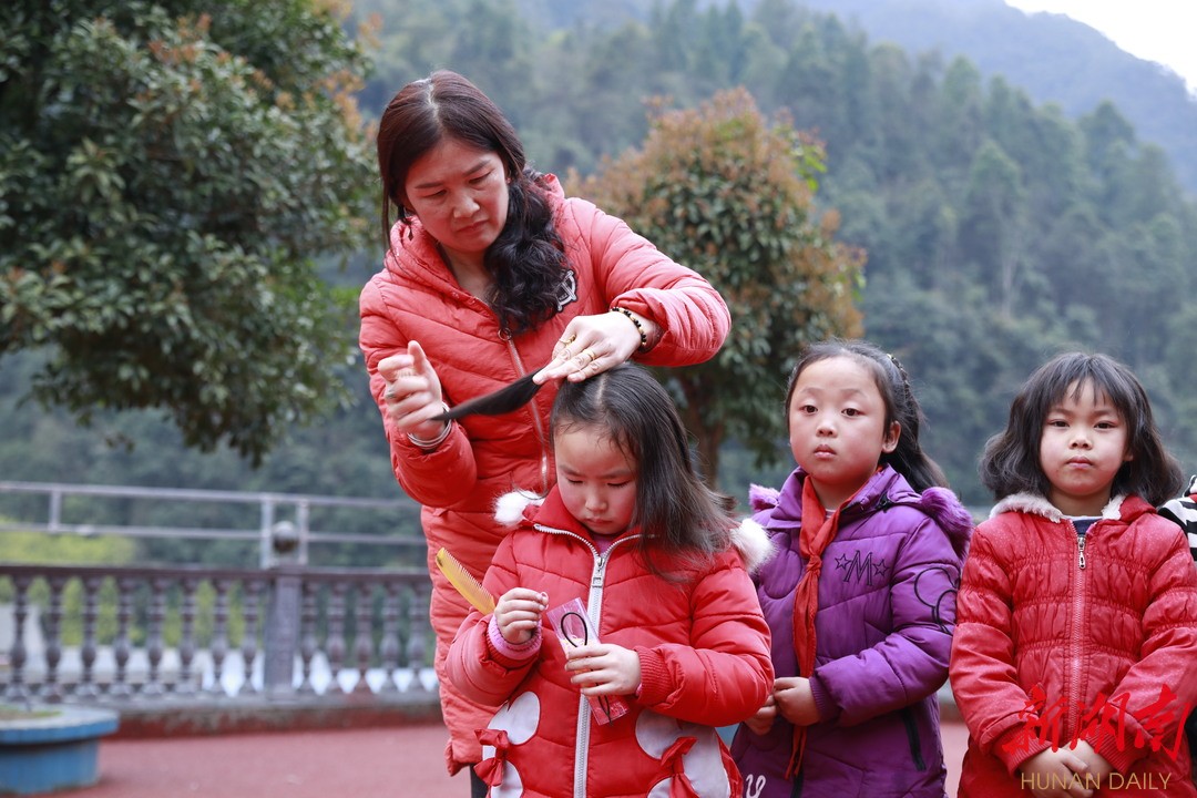 10月27日一早,记者来到该校托管中心。“女孩子排好队,梳头发咯。”二楼走廊上,陈霞正给娃娃们整理头发,晨曦由远及近照来,勾勒出一张张朝气蓬勃的面庞。