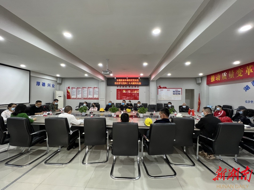 湖南日报·新湖南客户端11月2日讯(通讯员 张懿)“坚持把发展经济的着力点放在实体经济上,推进新型工业化”“强化就业优先政策,健全就业促进机制,促进高质量充分就业”……昨天下午,长沙市雨花区东塘街道东塘社区辖内的长沙市工人文化宫原址新建项目上,湖南省第六工程有限公司的建设者掀起学习党的二十大精神热潮。