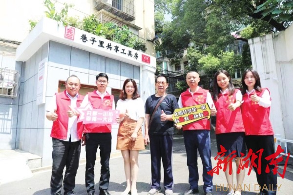 ▲开福区烟草局的工作人员参与共享工具房的志愿服务活动。(本文图片由东风路街道提供)