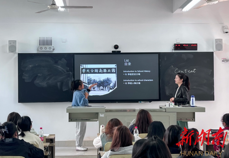 “有谁能用英文讲述一下西南联大中最感兴趣的人物?”“哪位同学知道‘霜降’的英文吗?”湖南大众传媒职业技术学院周颖莹老师的英语课堂,最大的特点之一就是教学生如何利用英文讲好中国故事。中文思维含蓄,英文思维直接,如何将两门语言串联绽放出新的花火,周颖莹花了很多功夫。