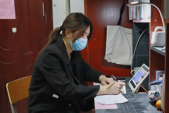 (铁科职院学生在寝室线上收看牛春林的讲座)
