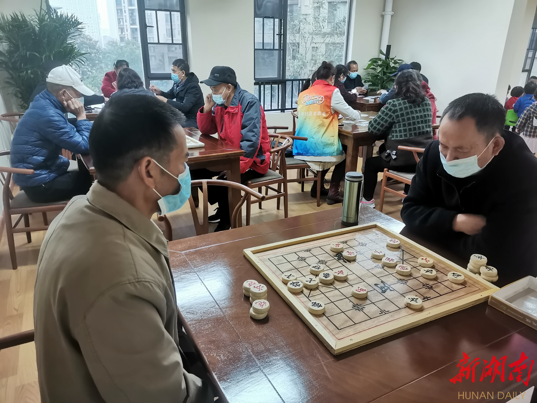 “在自己小区就可以下棋了,下雨了除了家里,还能遇到一群合适的人一起玩一玩,这老年生活真舒适。尤其现在到了冬天,天气寒冷,带小朋友也可以在这边玩玩,日子都过得好充实。不仅环境优美舒适,还可以在里面下棋看书、拉拉家常,既晓得了社区大小事情,还能解决很多疑难问题。”家住洋湖公馆一期的退休居民欧阳芳乐呵呵地说。