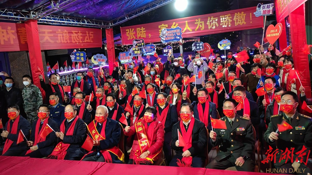 11月29日,洞庭西滨,寒风凛冽。在汉寿县神舟十五号载人飞船乘组航天员张陆的家中,热闹非凡。50多名亲朋好友陆续赶来,共同见证神舟十五号发射升空。