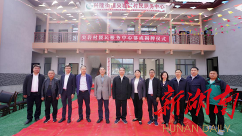 调研结束后,尖岩村举行了便民服务中心揭牌仪式。王建华、时荣芬共同为尖岩村便民服务中心揭牌。
