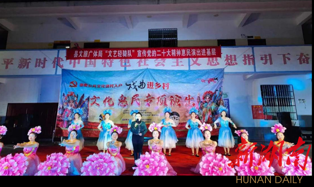 用文艺浸润田间地头,唱响新时代的主旋律。连日来,由麻阳花灯戏剧团数十名文艺演职人员组成的“文艺轻骑队”走村串巷,用特色文艺表演为群众带来一场绝妙的视听盛宴。