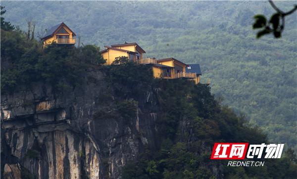 悬崖木屋如镶嵌在峭壁上,近看,岭隘曲径,奇石香花,那一栋栋精致典雅的小木屋,犹如海市蜃楼落入人间。远望,像一只只栖息在悬崖边的凤凰,静静的飘逸出浩瀚天宇中的吉祥灵气。