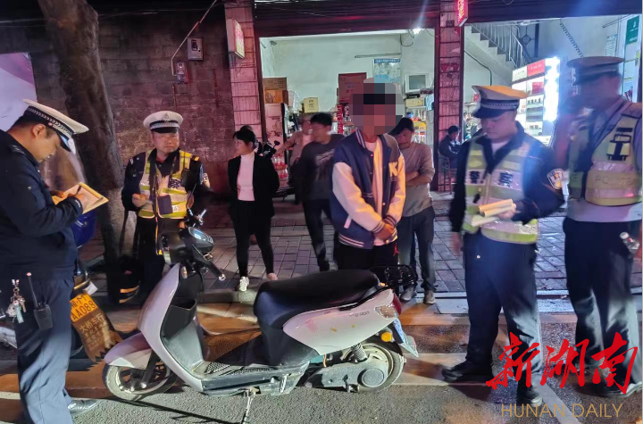 湖南日报·新湖南客户端11月24日讯(通讯员 蒋义军 刘德平)近日,江华瑶族自治县公安局交警大队在该县沱江镇长征路开展夜查行动时,查获一辆给号牌“戴口罩”的电动摩托车。