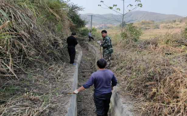 10月31日,行走在新宁县安山乡“沙田垅”农田一带,远远看去,村民有的在割草砍青,有的在挥铲清淤,有的在清理枯枝杂物,一派水利冬修的火热场景。