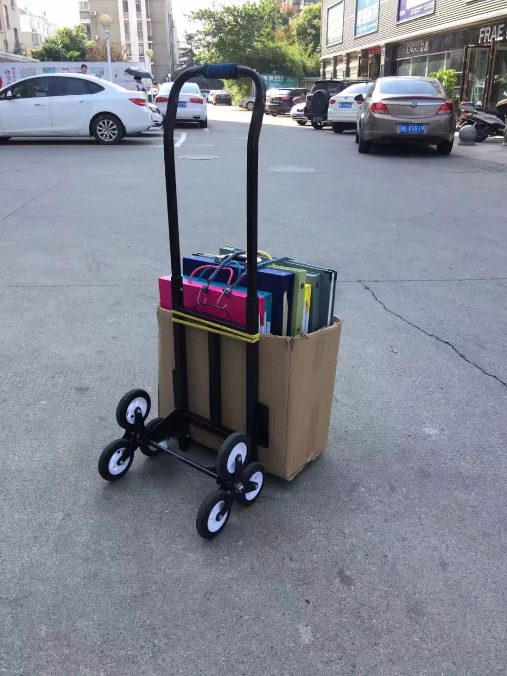 归玉娜在商场推销时用的手推车