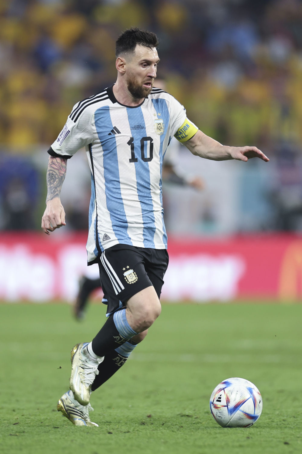 ↑阿根廷队球员梅西在比赛中带球。新华社记者 徐子鉴 摄