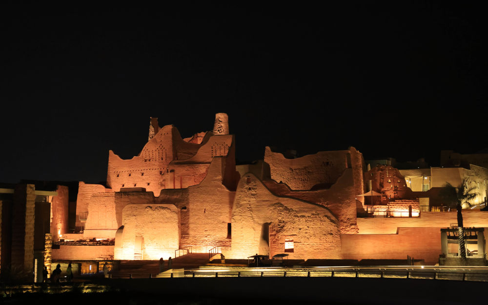 ↑这是3月27日在沙特阿拉伯首都利雅得郊区拍摄的历史名城迪里耶的一处遗址。