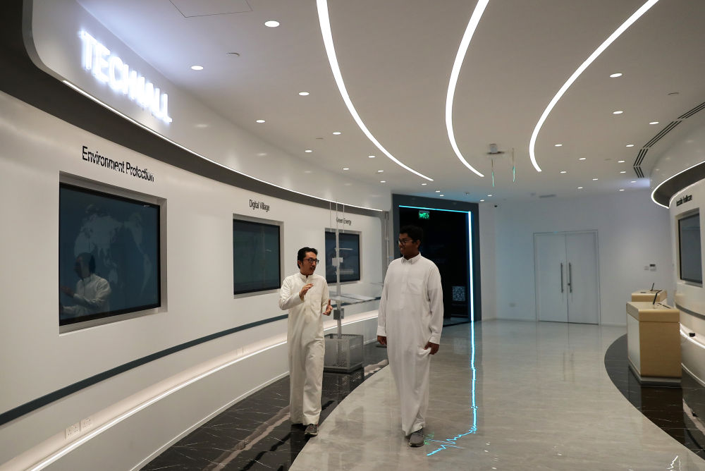 ↑12月4日,人们在位于沙特阿拉伯首都利雅得的华为未来科技体验中心参观体验。