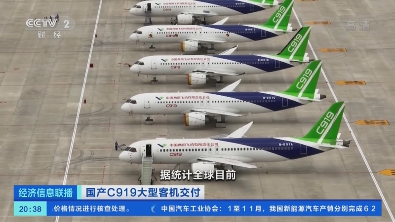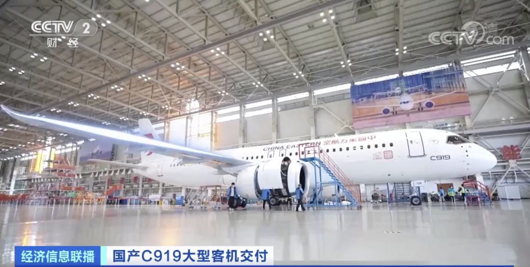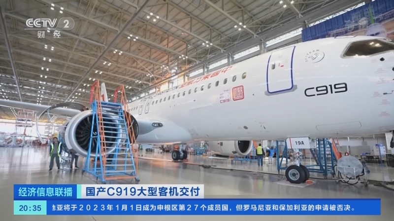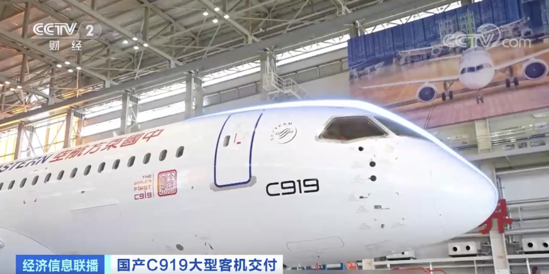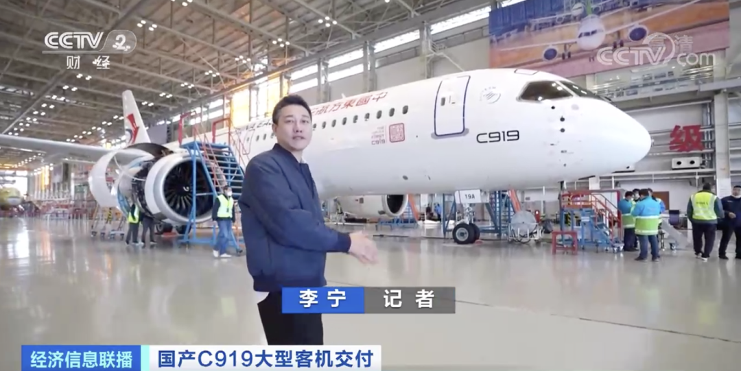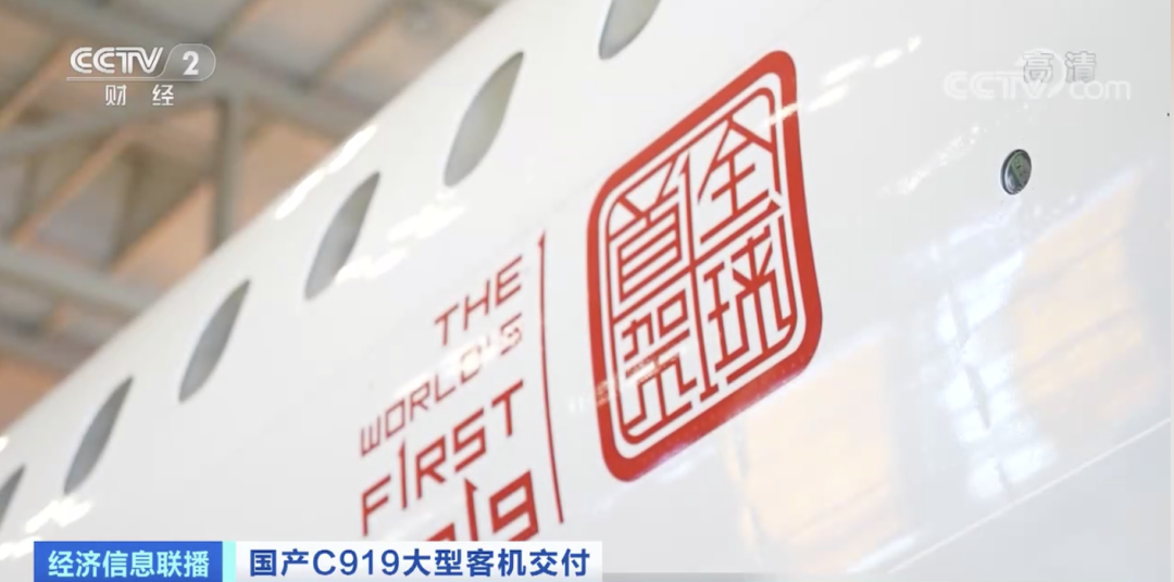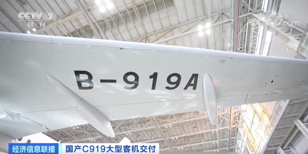 记者 李宁:这架就是交付东方航空公司的C919全球首架机,现在它已经换上了全新的涂装。涂装以白色为主,在飞机尾部有一组非常具有寓意的数字,B-919A,是这架飞机的注册号,就像我们的身份证一样,将伴随整架飞机的一生。