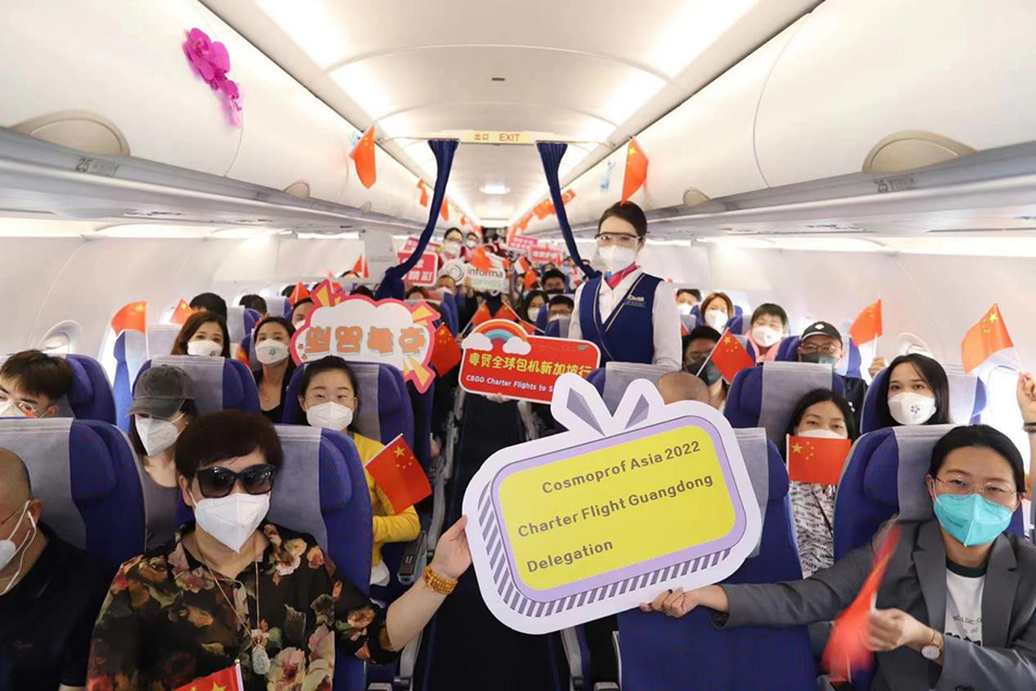 11月14日,69家广东企业的160人乘坐包机参加2022年亚太区美容展。 南方网 图