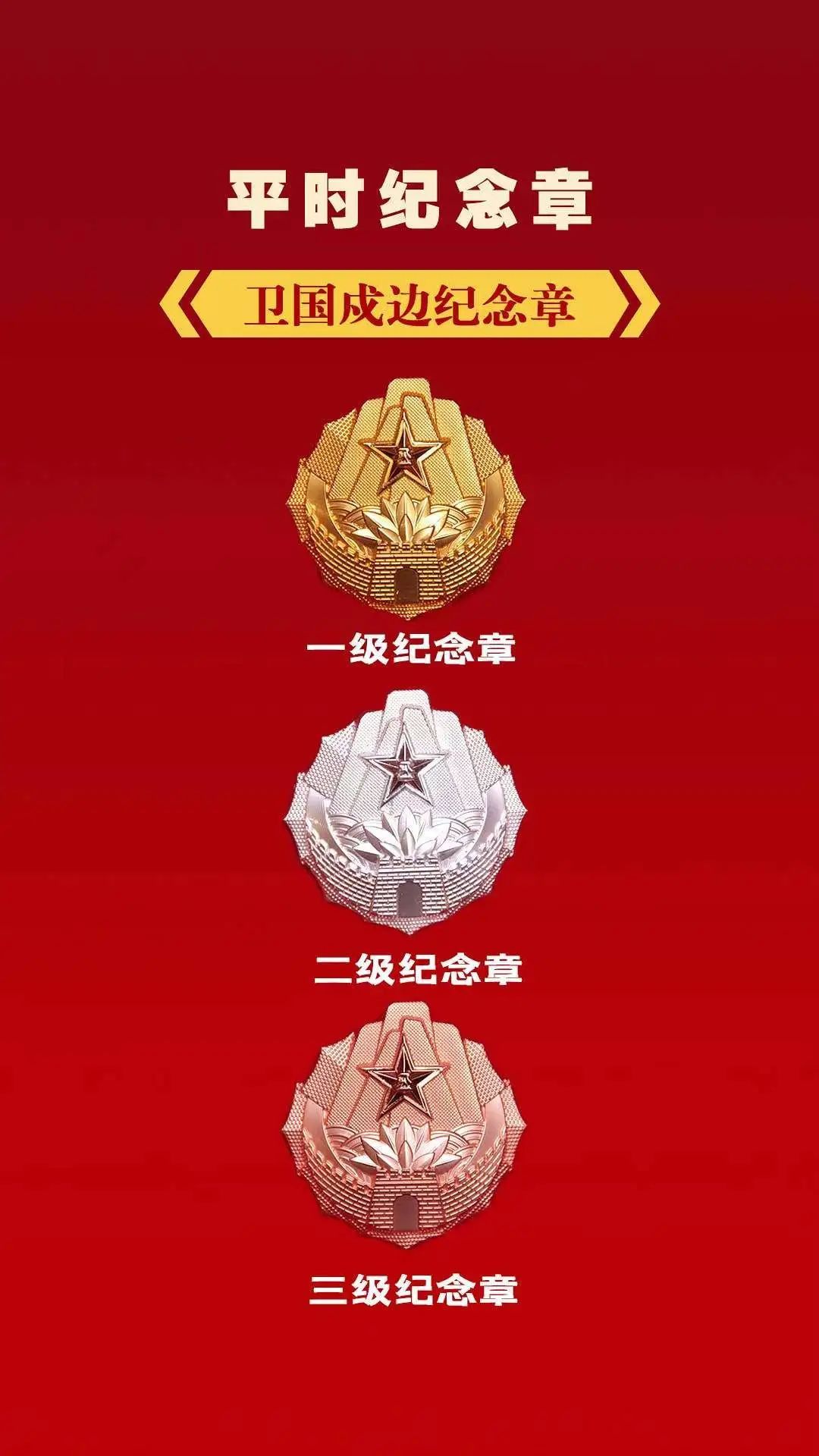 卫国戍边一级、二级、三级纪念章