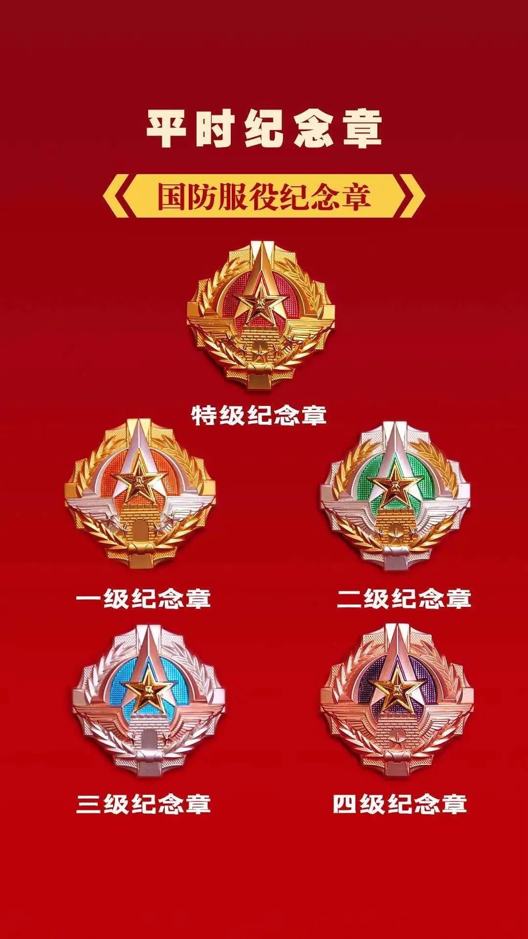 国防服役四级、三级、二级纪念章