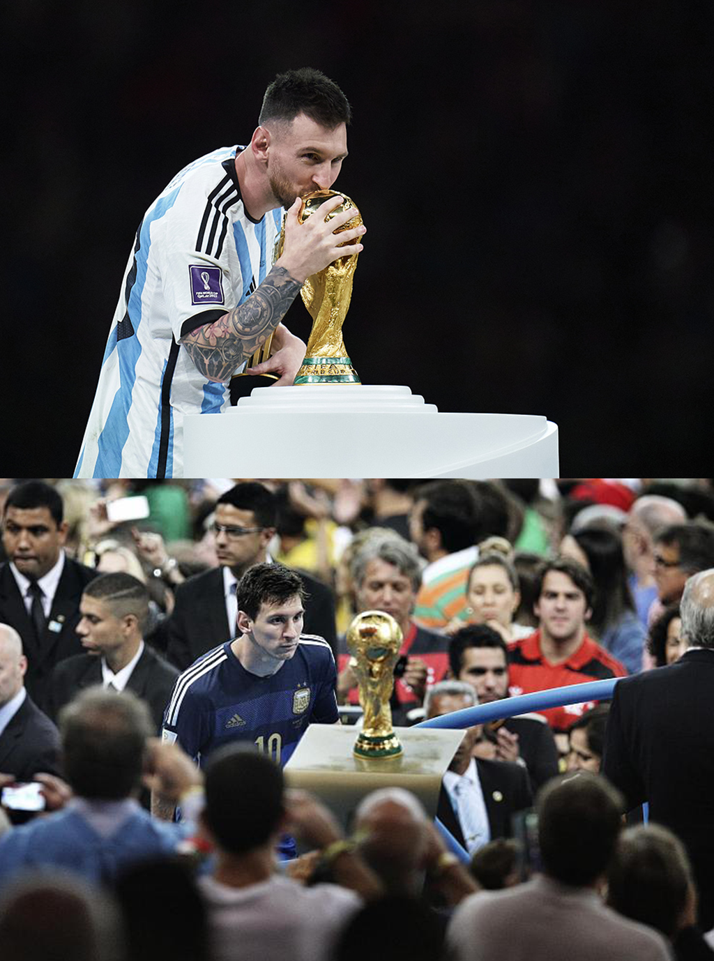 这一届,梅西如愿举起了大力神杯,补上了2014年与大力神杯擦肩而过的遗憾。