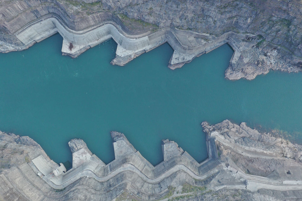 这是11月24日拍摄的白鹤滩水电站尾水排水口(无人机照片)。