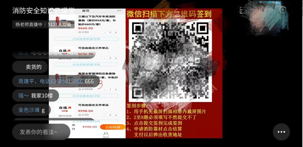 日前,记者在一场“消防安全知识云课堂”直播中看到,一位自诩为“消防安全专家”的“杨老师”,正在向观众兜售各类消防器材、救生设备。他自称供职于“平安消防中心”,已从事消防安全工作8年。